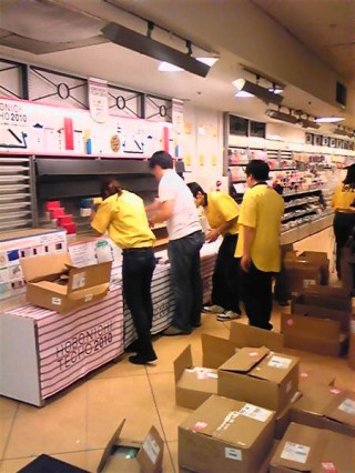 われわれは、 社内の一角に机をもうけて、 そこに、おやつをたんまりと 買ってきて、 休憩ができるスペースを作った。