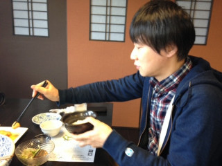 さん、さん、さんがいらっしゃいました!まずはばっぱの台所でご飯です。旬のタケノコの煮物、震災後今日初めて作られたというホヤのオリーブオイル漬け、そして海鮮丼とどれもおいしいです。わたしはいつもこういうおいしい現場に立ち会えてありがたいです。食事を終えまして、これから撮影をおこないますー!