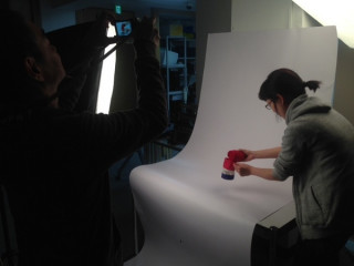 大ホールにて、ただいま社内制手工業をしています。とあるものを、手のキレイなしほさんに、手タレをお願いしています。わー、光がすごくて、しほさんが、とけてしまった!ぎゃーー!そんなかんじです。(どんな感じ?)