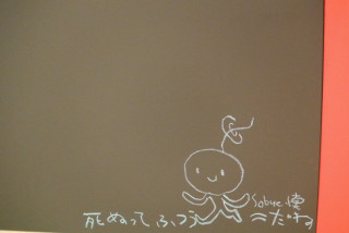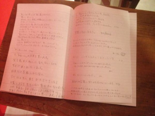 今日からはじまった 「かないくん展」、 夕方 と一緒に お邪魔したところ、 お仕事終わりとおぼしきお客様が、 ひとつひとつの展示と向き合うように、 じっくりとご覧になっていました。 そしてノートにはすでにたくさんの感想が。
