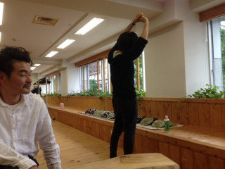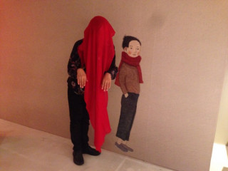ホソイは診察室の待合席で エア犬をだっこしています。