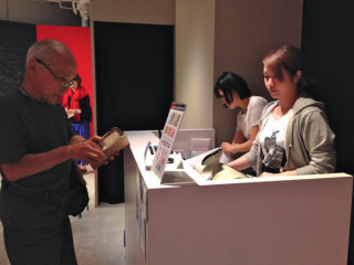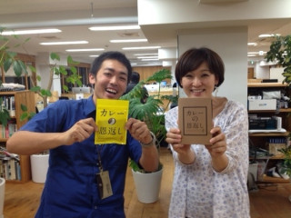 廣瀬と星野は、 ただいま秋元さんの作品のひとつ、 コラージュでつくった冊子を見ては たのしそうに話しています。