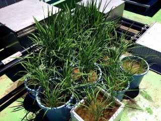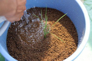 じつはですね‥‥というほどのことでも ないんですけど、 いま、事務所の近くのビルの屋上で 稲を栽培しています。