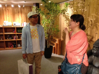 テキスト中継のなかで、 「急きょ! いま見ている読者で 表参道まで取りに来られる人に、 スズムシさしあげます!!」 という呼びかけを行いました。 募集した時点で「行きます!」というメールが 一通もなく、大使は落ち込みました。 一枚目が、その落ち込んでいる画像です。 霧吹きを手に、呆然と立ちすくんでいます。