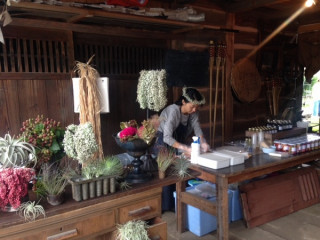福田さんと山下さんと、 茨城県結城市にあるcafe la famille にきています。 店内には福田さんの絵がたくさん飾ってあるんですよ。