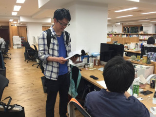 も、 気仙沼の事務所にいる とも スカイプでつないで集合です。