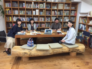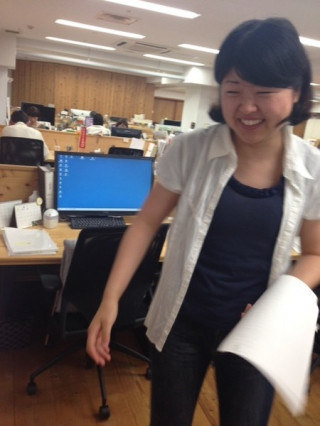 窓にあてるとトレース台代わりになりますよ、 と言うと「えっ、まじでー?」と さっそく試す 。 感想を聞いてみると 「画面にかぶせるより描きやすいねぇ」 とのこと。 イラスト提出済みの は 多田の後ろ姿をやさしく見守っていました。
