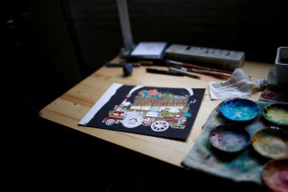 TOBICHIでは、 大原さんのデザイン画をもとに 横尾さんが刺繍していく 「編繍トート」がつくられたり、 TOBICHI2では junaidaさんがライブペインティングしていたりと、 TOBICHIもTOBICHI2も ものすごく「ライブ」な展示になってます!