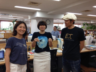 うわー! 意外と惜しかった! 「わたしもE.T.持ってます」 という人が数人いたので、 また今度やろうと思います。 あ、ほら、ここにも、 E.T.クッションを使っている人も いることだし。( )