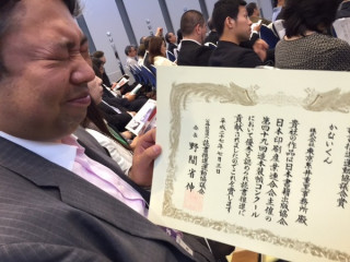 ひとつひとつ、 賞が発表されていきまして、 呼ばれた人が壇上で 表彰状などをもらいまして、 そのたび、拍手が巻き起こりまして、 だんだんと、『かないくん』の番が、 つまり、スガノが壇上に上がる番が 近づいてまいりました。