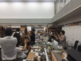写真2、3枚目は ほぼ日手帳2018発売に向けて、 さいきん毎日やるようになった 朝会の手帳チームです。 (今日は人が少なめ)