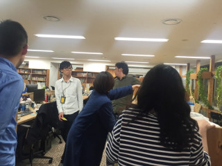 一瞬でわっと人が集まるのが弊社の特徴、 なんだなんだと、 みんなが集まってきました。