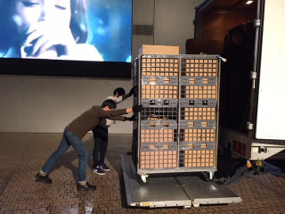 棚と鏡たち、設営順調!