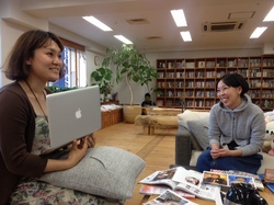 テレビの前でミーティングをしていると、