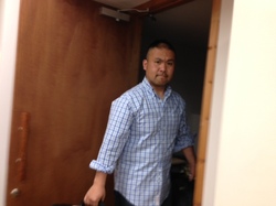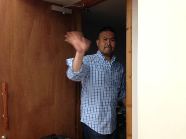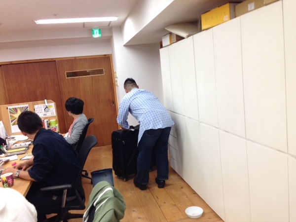イサワが、大きなスーツケースを