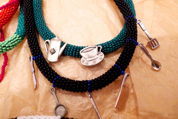 ビーズのチョーカーのアクセントになっています。