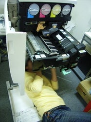 プリンターの内部がむき出し状態。