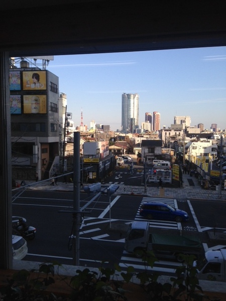 森ビルと東京タワーが並んで見えます。