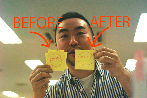 眉毛が顔の端まで来ていたよ?