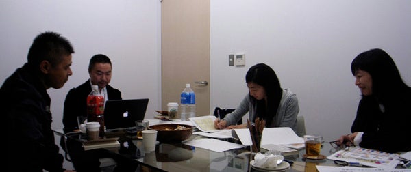 会議室で作業しているところに