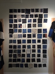 壁に展示しているちいさな正方形の布は