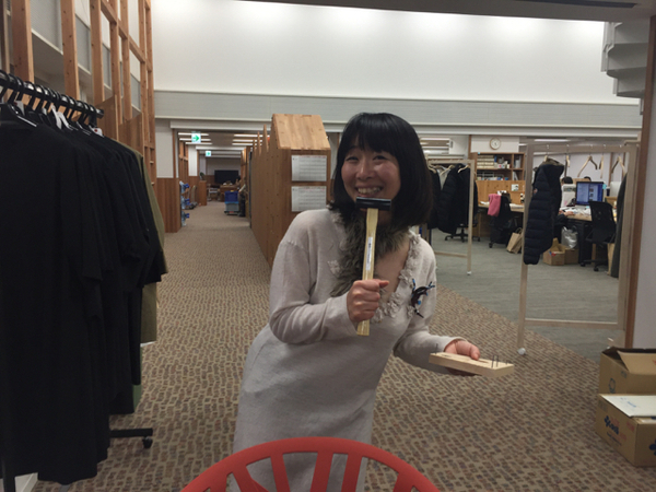 むこうから、トンカチをもった女子が