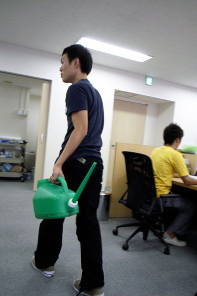 社内を巡回中。