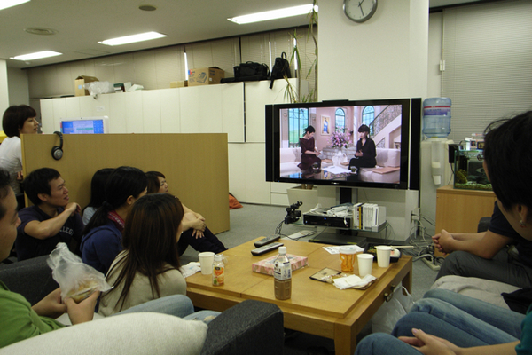 テレビの前に乗組員があつまりました。