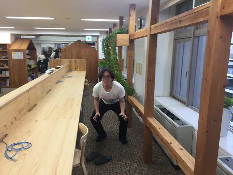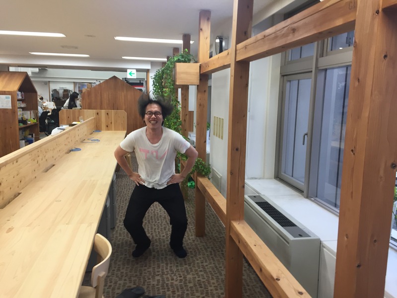 会社の端っこで跳んでくれることに。