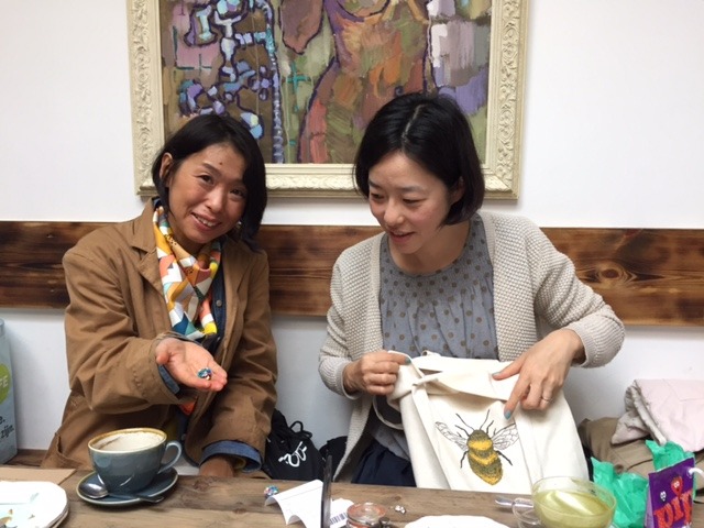 ロンドンで買い付け中の三國万里子さんとわたくし。