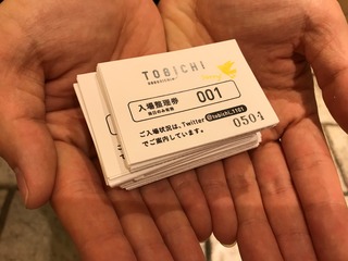 ご入場いただける順番が記された整理券を