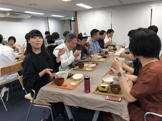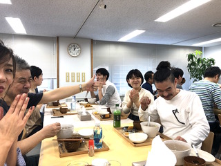 遠くの席からも拍手でお祝いされてます。
