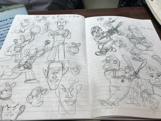 描かれたラフスケッチのノートが