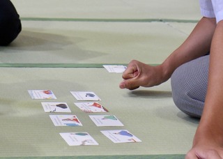中学生たちが競技かるたに挑戦しました。
