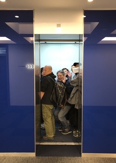 にぎやかに、ぎゅうぎゅうにエレベーターに