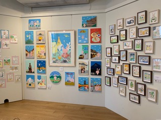 90点以上の直筆絵画が並び、