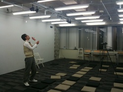 ホールの準備中、