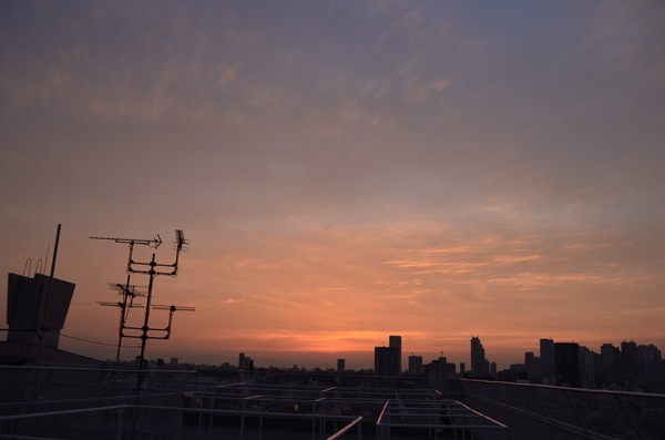 夕空は橙色に塗り込められてしまいました。