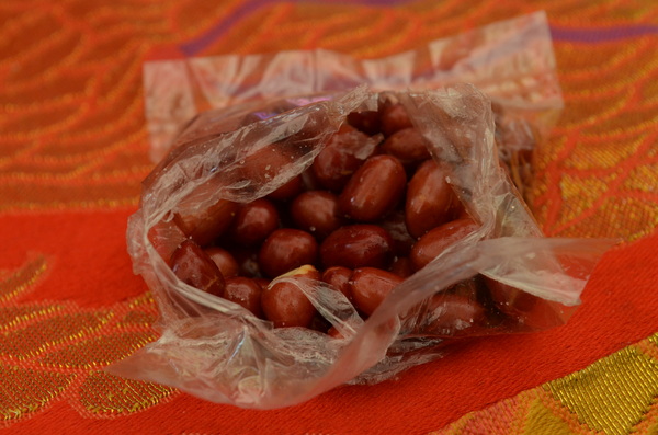 (赤い布の上のピーナツがそれ)