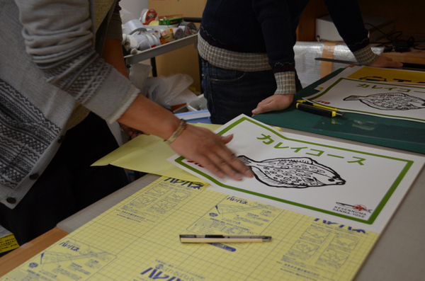 ハレパネの貼り方を教わっていた。
