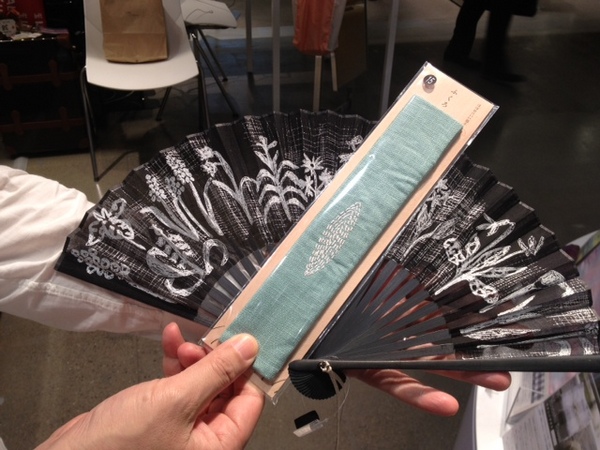 たくさんのお客様がいらしてくださってます。雨で足もとの悪いなか、どうもありがとうございます!みなさん、すべての扇子をあおぎくらべてお気に入りのひとつを選んでいかれます。