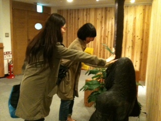 山下さん、ゆーないとさん、ちなさん、有楽町盛り上がってますか??おつかれかまですー!今日のイベントがうまくいくように、ゴリラさんに願をかけつつ、今からめがちょうさんとむかいます!しばしおまちくださいー!