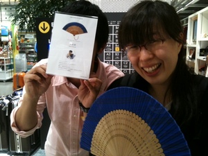 LOFTの大塚さんもお買い上げくださいましたー!ずっとファンだという荒井良二さんの扇子です。お似合いですよー!