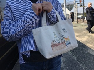 ホームに見覚えのある、トートバッグ!