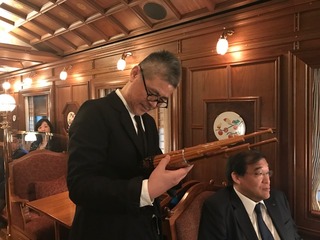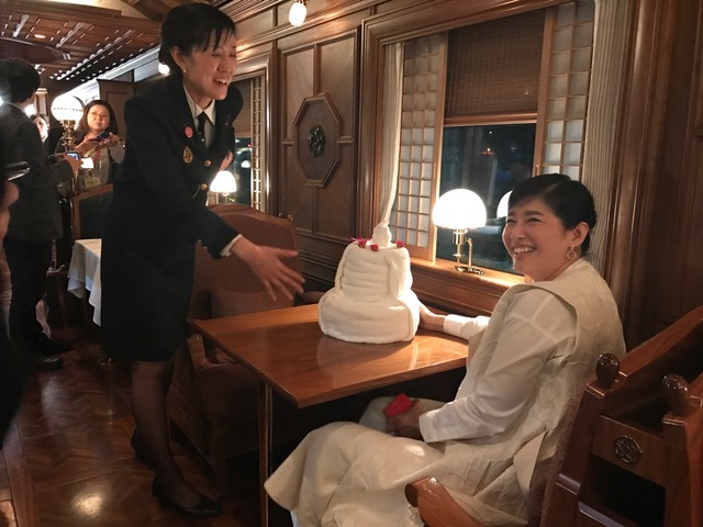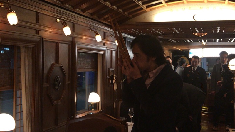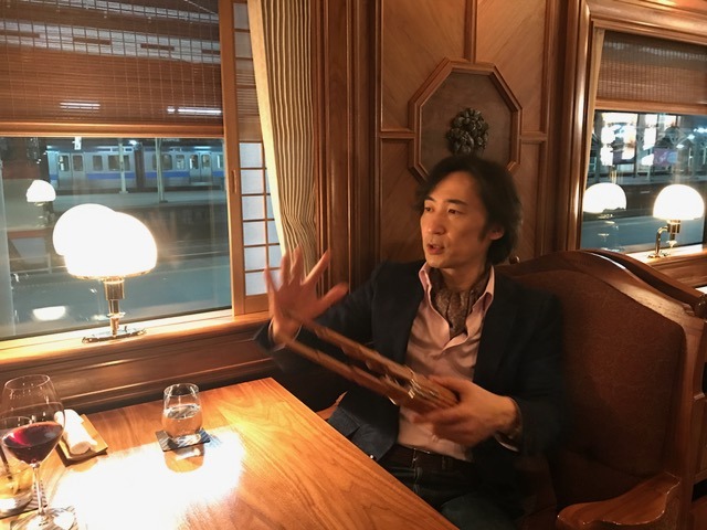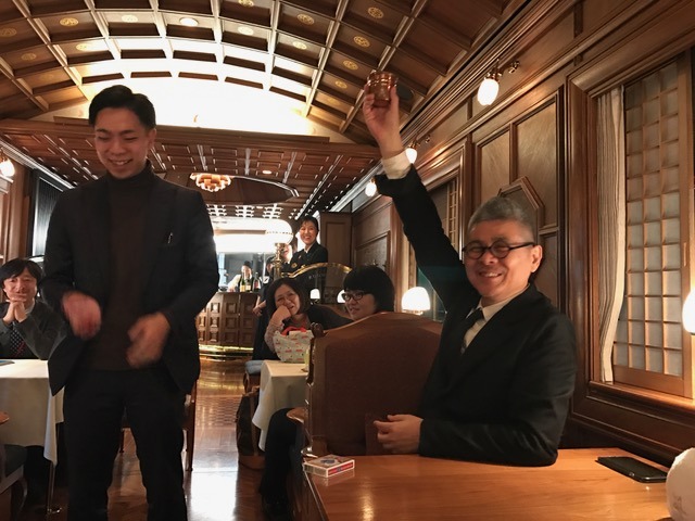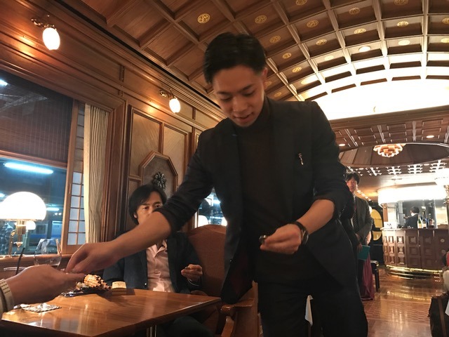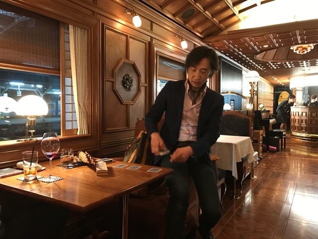 途中の駅で乗り込んで待機していたマジシャンさん。