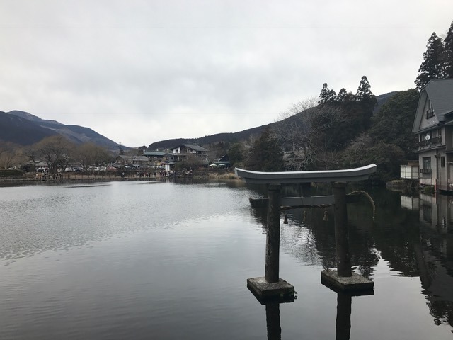 池みたいな湖。金鱗湖。
