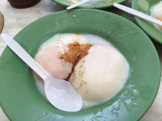 カヤトーストは温泉たまごをつけて