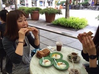 同じようにカヤトーストを食べていて、