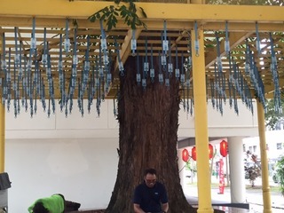 鳥籠をつって、小鳥の啼き合わせ(競争)を