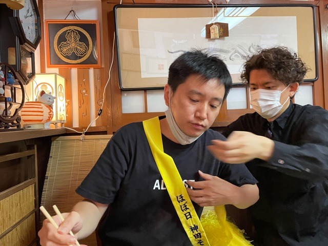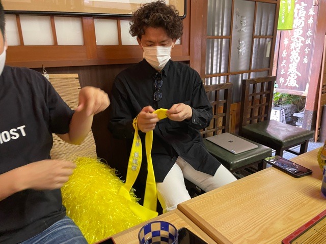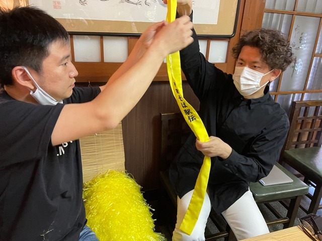 「西田くん、タスキできたよ」
